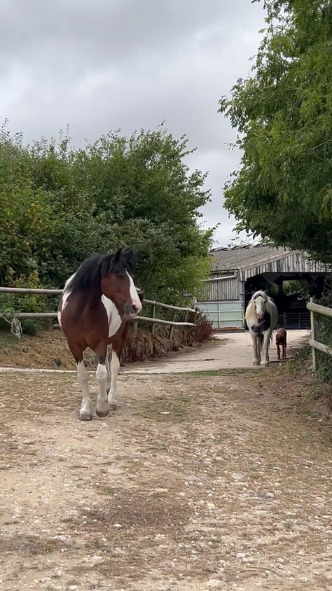 At Healthy Hooves Equine, our horses roam freely in a track system promoting gentle movement, social interaction, and emotional well-being. Our own horse and pony share this serene lifestyle, as we believe in providing all horses, especially in their later years, with a peaceful and natural environment to thrive.